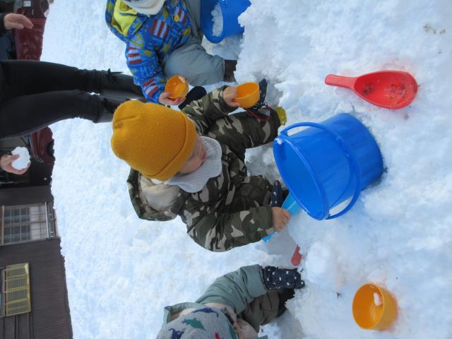 今年は暖冬のため少ない雪ではありましたが、子ども達は雪に触れることをとても楽しみにそりあそびやままごとなどを楽しみました。