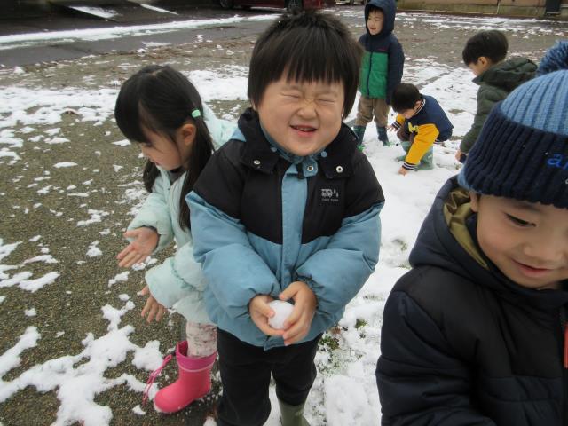 少しの雪でしたが、「わ~☆☆」と目を輝かせ外に出て、冬に移り変わった園庭の様子を全身で感じ楽しんでいました。