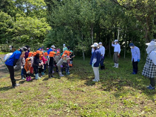晴天の5/7に年長さんがバスに乗って、たいゆう保育園で「農園交流」をしてきました。