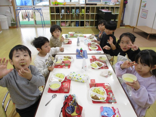 この日の給食はクリスマス献立の特別メニュー。