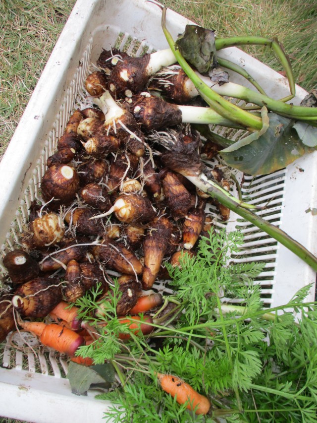 さといもは簡単、と聞いていたのですが、あまり大きく育てることができず・・・期待していた大きな葉っぱの傘を作ることができませんでした。