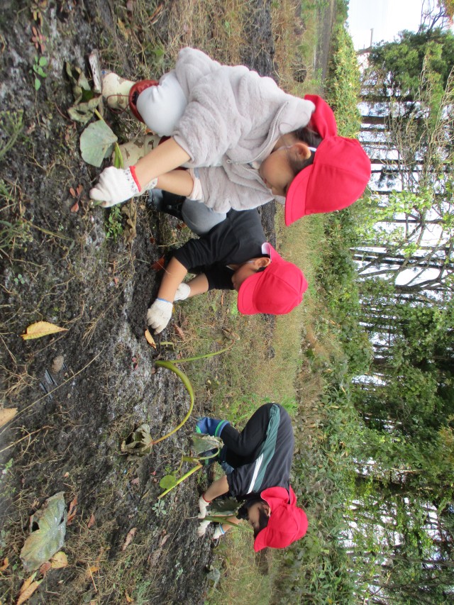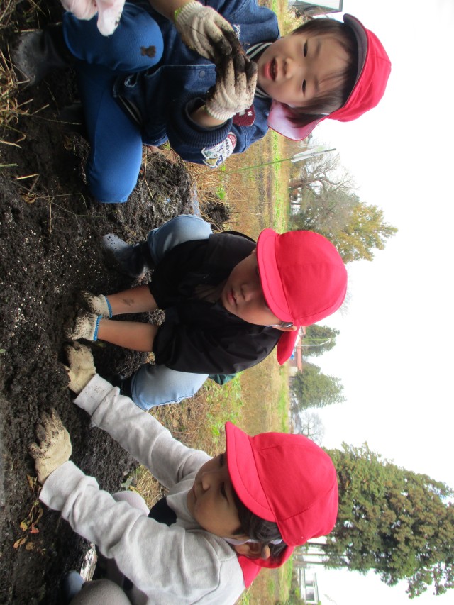 11月13日、ぱんだ組(年中児クラス)の子どもたちが、さといも収穫を行いました!