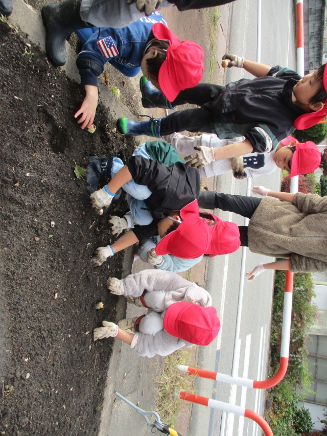 子どもたちの姿を見守っていた限りでは、春にはたくさんのチューリップが寄り添っている花壇になることが予想されます(笑)。