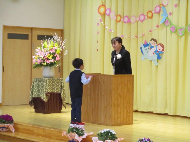お家の人や来賓の方々、そして職員が見守る中、堂々と証書を受け取り、一字一句間違うことなく卒園の呼びかけをこなし、みんなで卒園のうたを歌ってくれました。